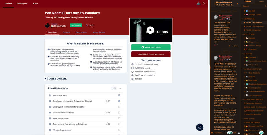 The Foundations is a course available for those inside the War Room to go through to master the mindset preparation for becoming a great entrepreneur.